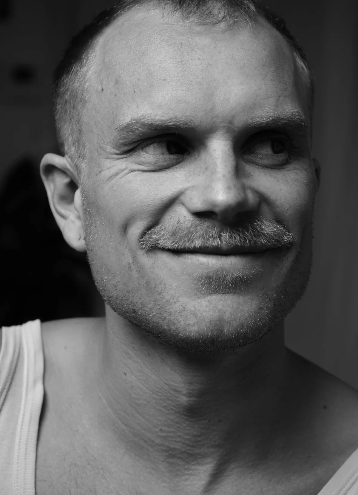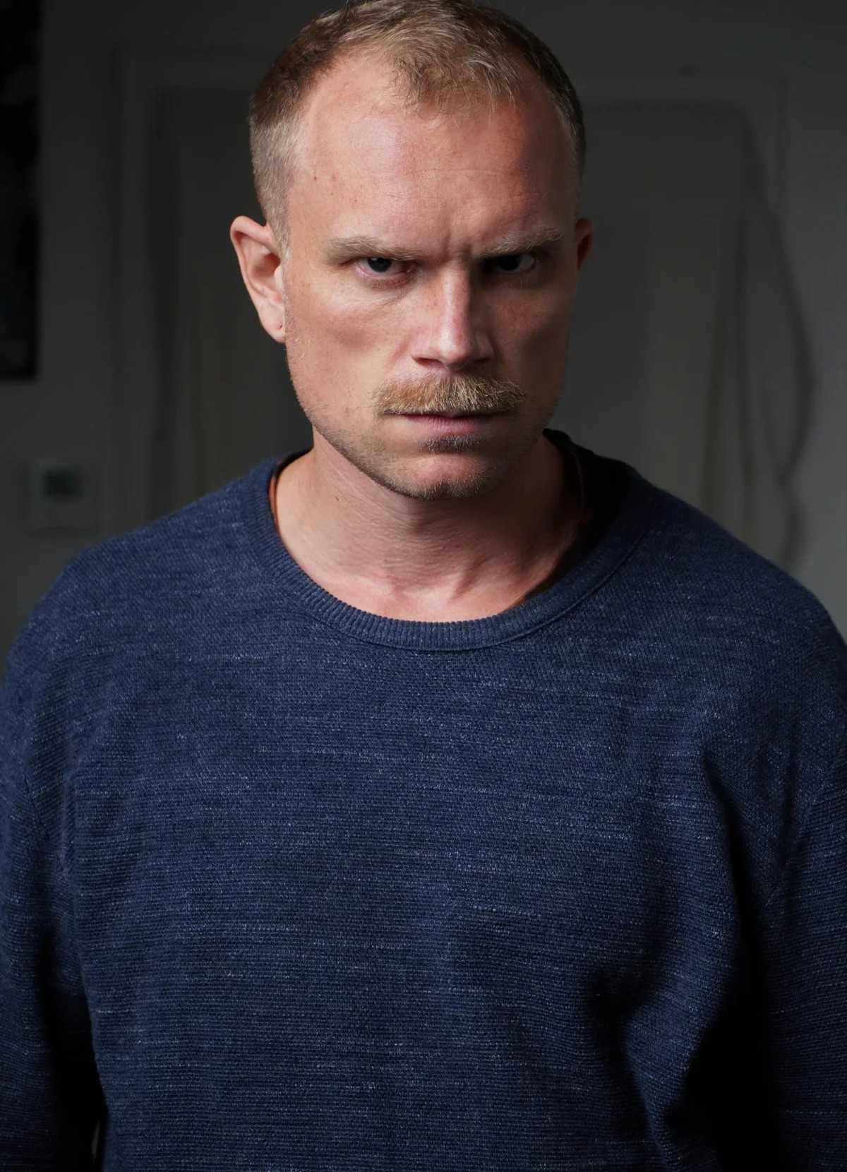 Lukas ist ein ausdrucksstarker Schauspieler im Spielalter von 29 bis 39 Jahren mit kurzem dunkelblondem Haar, markanten blauen Augen und einem charakteristischen Oberlippenbart. Mit seiner muskulösen Statur und einer Größe von 183 cm verkörpert er eine starke physische Präsenz, die sofort ins Auge fällt.